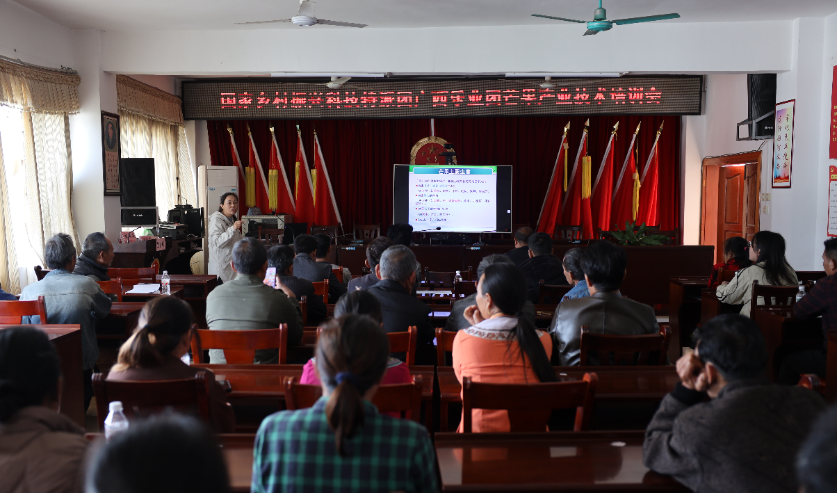 10月29日,针对乐业县芒果产业存在的问题,百色站站长任惠和团队成员董龙到雅长乡政府开展技术培训,分别以“芒果绿色高效栽培技术”和“芒果主要病虫害识别及绿色防控技术”为题进行了授课培训,重点普及芒果质量安全知识。培训中,授课专家结合理论和实操进行了专题讲解,培训现场互动频繁,农户提问踊跃。大家纷纷表示,培训内容实用、针对性强,有效解决生产中的实际难题,增强依靠科技增收致富的信心。