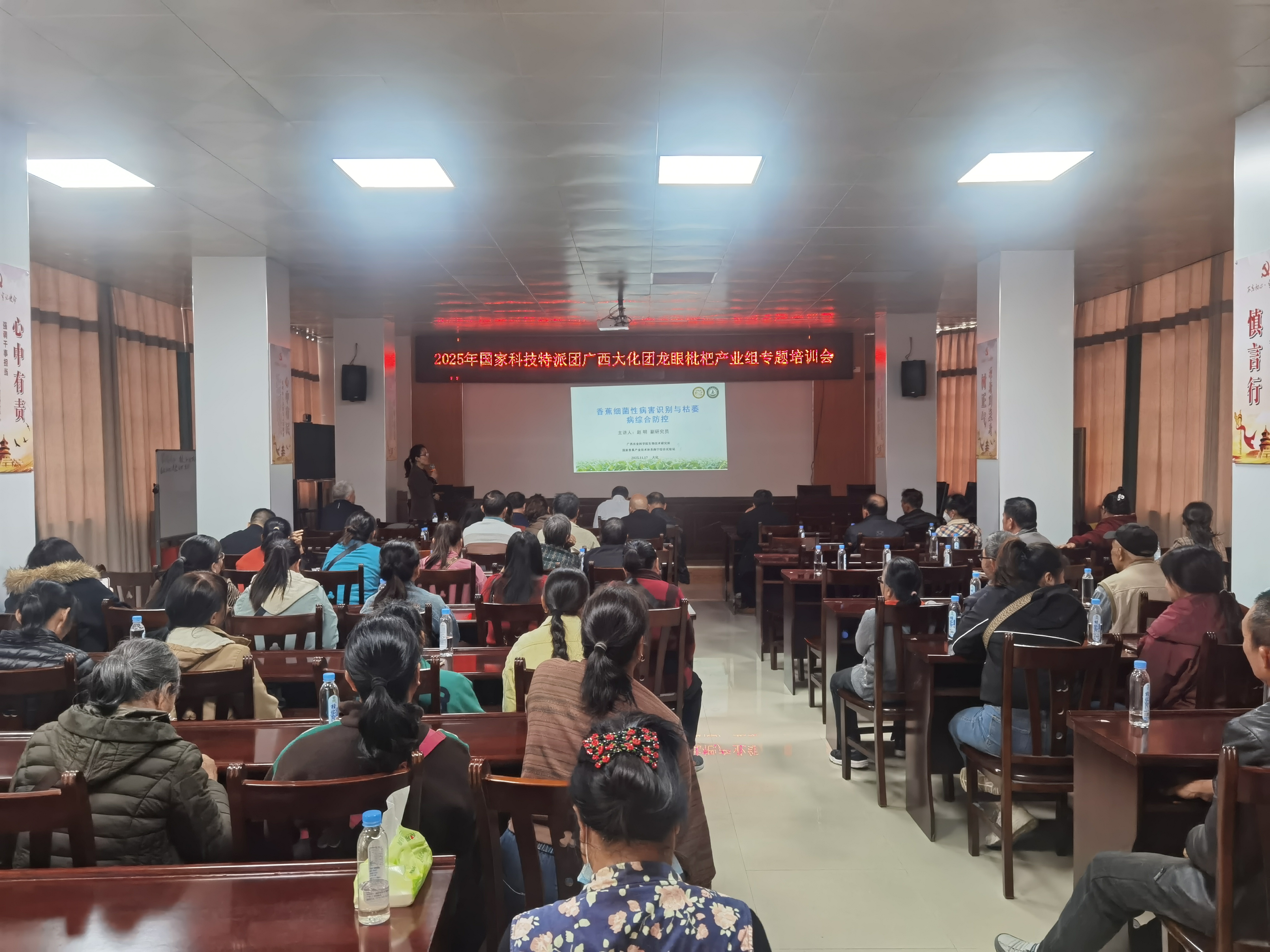 针对调研中发现的突出问题,香蕉体系南宁站成员赵明副研究员在大化县组织了以“香蕉细菌性病害识别与枯萎病综合防控”为主题的专项技术培训。培训面向核心产区农户、技术骨干及合作社代表等参训人员100余人。培训内容紧密结合当地生产实际,重点讲解了在当前条件下如何采取经济有效的综合防控措施,包括加强病害监测、落实健康栽培管理、增强植株抗性等,为农户提供了及时、实用的技术指导。