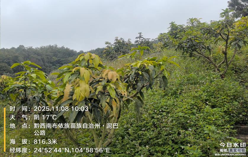 首先,专家们调研了贵州焱宏农业科技有限公司经营的芒果种植基地。该基地位于兴义市南盘江镇南龙村,于2019年开始种植,面积达3000亩,主要种植贵妃芒,还少量种植了热农1号和红金刚2个芒果品种。由于芒果苗逐年种植,且前期种植存在一定技术和当地管理用工紧缺等问题,幼树总体生长较慢,眼下最后一蓬梢趋于成熟阶段,叶瘿蚊危害叶片较为严重。目前,公司正在采取技术措施促进和控制末次梢的老熟和生长,预计2026年约计800亩进入初果期。
