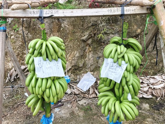 图5:现场采收的两串“中蕉8号”果穗,均超过40公斤