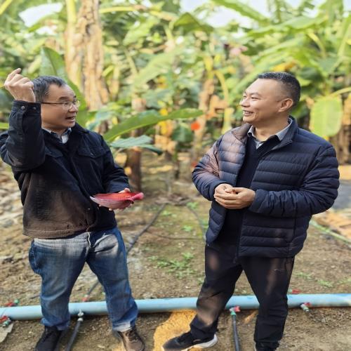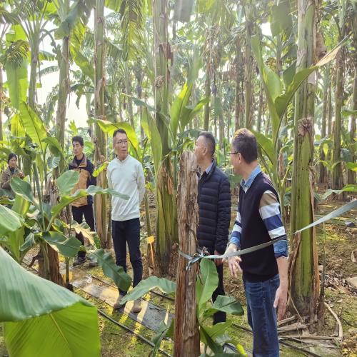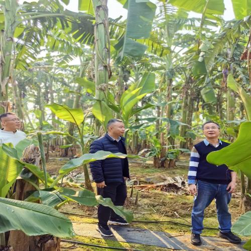 2026年1月14日,广西农业农村厅水果技术指导站站长王举兵、副站长郑吉祥、生产科正高级农艺师李珍一行4人,赴国家香蕉(芒果)产业技术体系南宁综合试验站(以下简称“南宁站”)位于南宁市武鸣区里建试验基地,调研指导香蕉杂交育种工作,南宁站站长邹瑜研究员、武鹏正高级农艺师及团队成员陪同调研并作详细汇报。