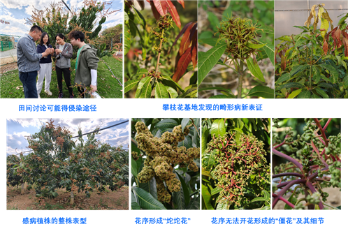 此次调查正值攀枝花芒果花芽萌动期(较高海拔区域)至盛花期(较低海拔区域),是该病害症状的最佳观察和研究时期。双方一致同意,下步重点研究方向为侵入机制、传播途径及田间防控药剂配方筛选等,通过优势互补、协同攻关,共同推进芒果畸形病防控研究工作。