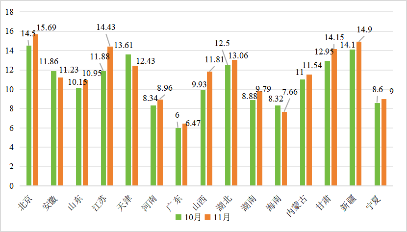 内蒙古 | 11.00 | 11.54 | 4.91% |
