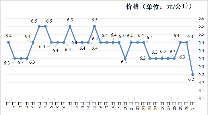 月份 | 批发价(元/公斤) | 环比±% | 零售价(元/公斤) | 环比±% |
